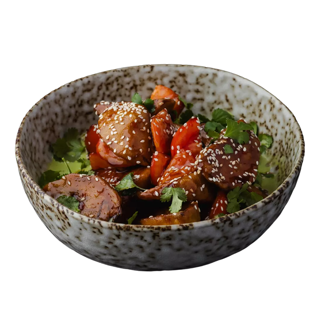Баклажан, помідор, соус солодкий чілі – унагі, кінза, кунжут