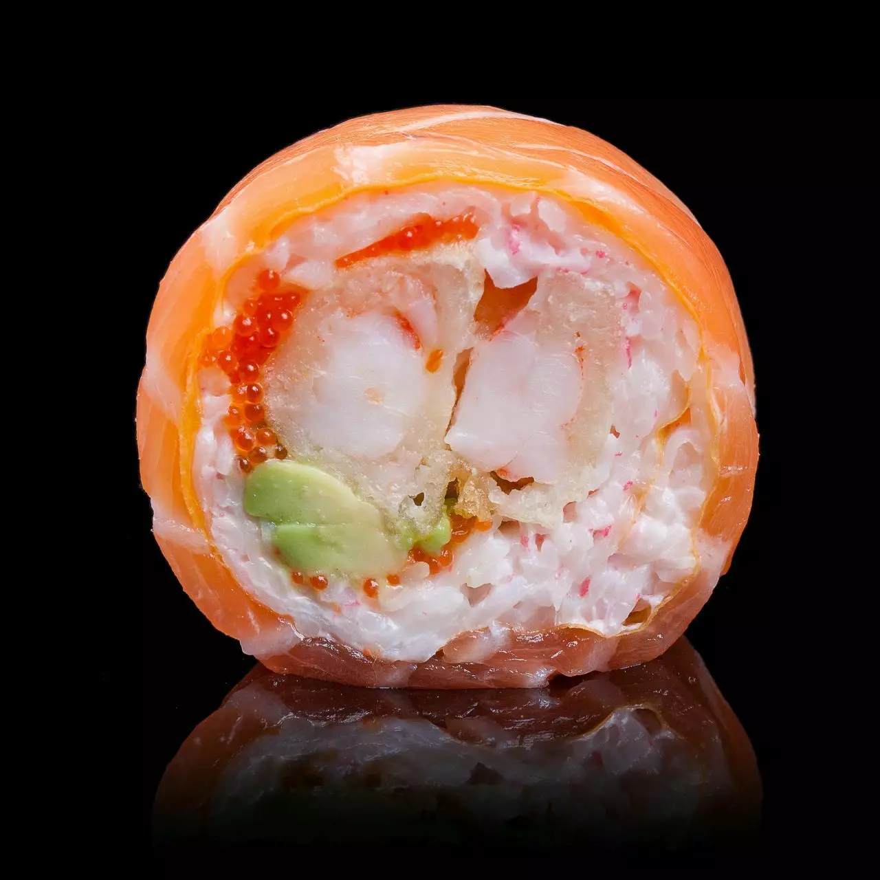Лосось, ”сніжний краб”, сир філадельфія, креветка в темпурі, авокадо, ікра